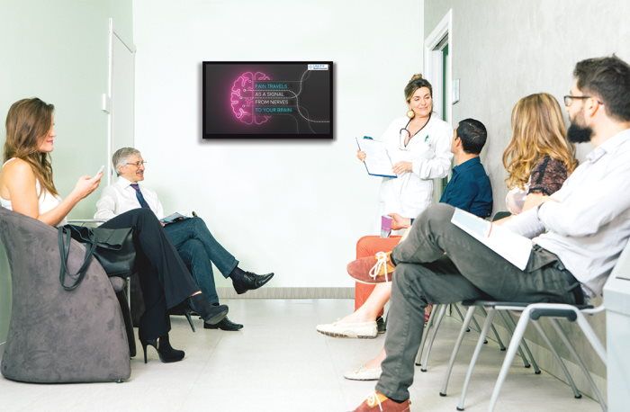 Когда ТВ экраны с релевантным и интересным контентом размещаются в приемных у кабинетов врачей и на ресепшен, это может сократить воспринимаемое пациентом время ожидания на 33%, особенно если это видео-контент.