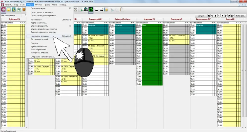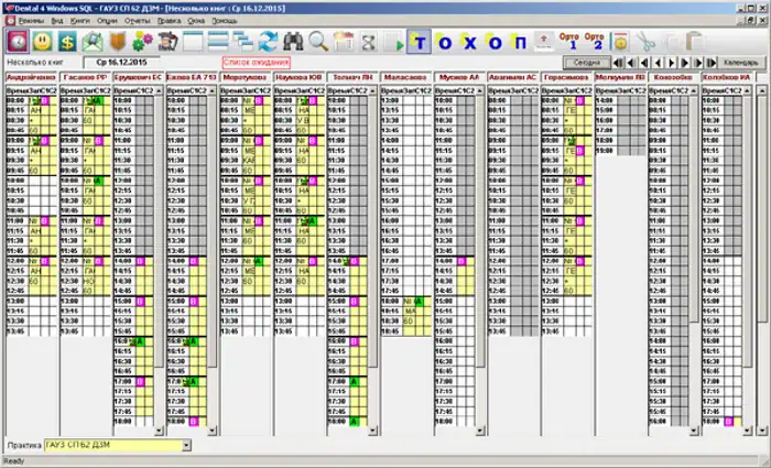 - Альтернативный способ отображения расписания врача и его команды (ассистент, гигиенист, другое)