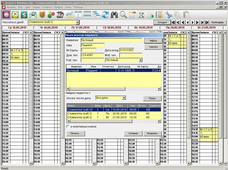 - Быстрый поиск записи пациента