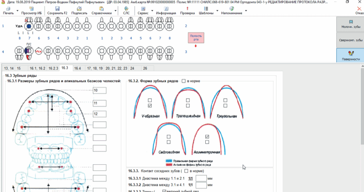- Медицинская карта ортодонтического пациента,. Полностью в электронном виде и соответствует форме № 043-у, учтены все актуальные требования приказа №834н. Наглядное и удобное заполнение, встраивается в стандартное обследование врача-ортодонта.