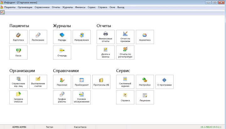 | Кассовые операции | Бонусы и сертификаты | АРМ главного врача/заведующего отделением |
