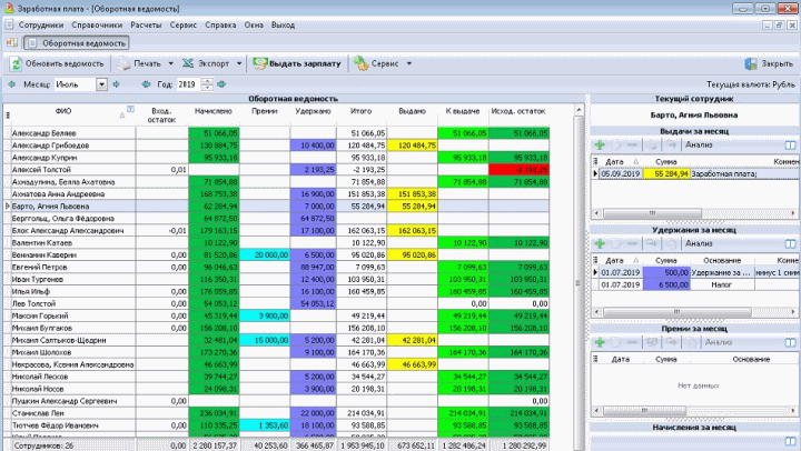 Позволяет гибко настроить автоматический расчет заработной платы персонала в соответствии с принятой системой мотивации. Для начисления используются правила, формируемые, в том числе и сотрудниками клиники, с помощью встроенных функций или макросов.