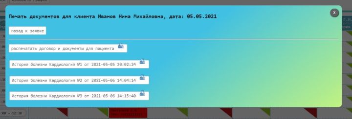 - Автоматизацию печати документов для пациента