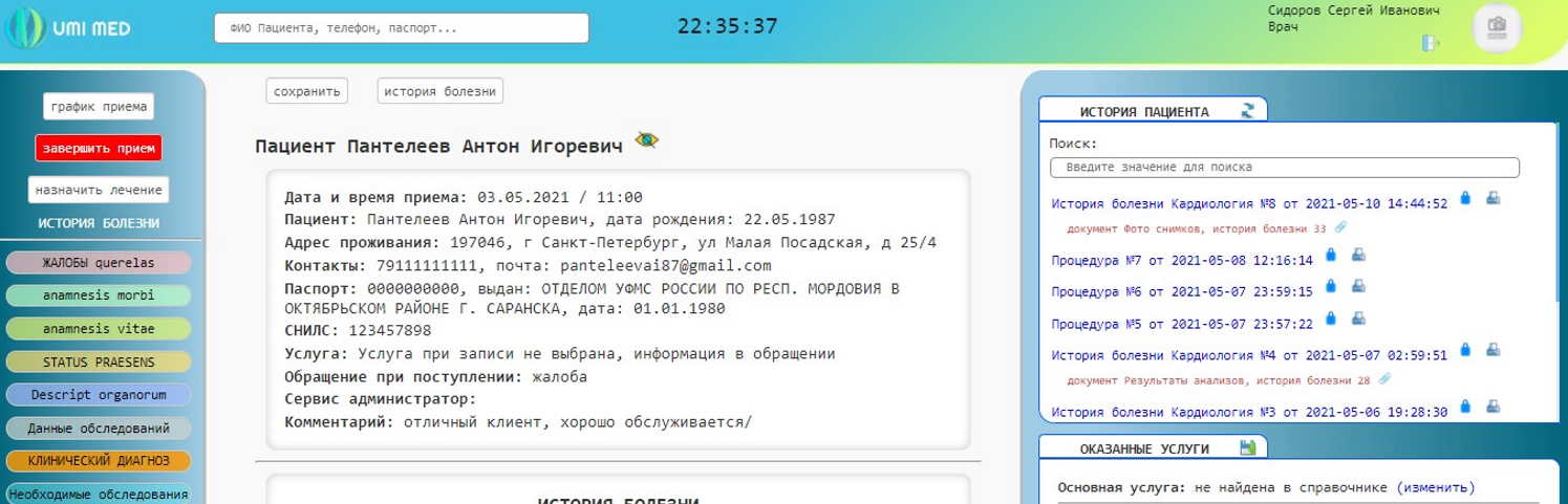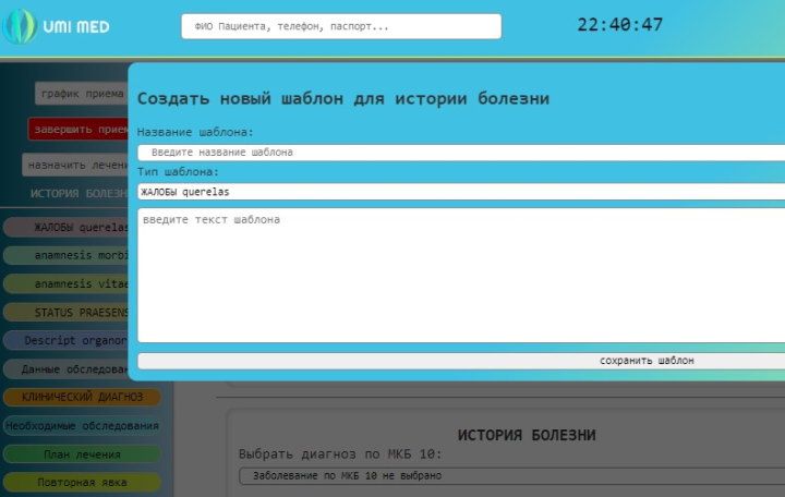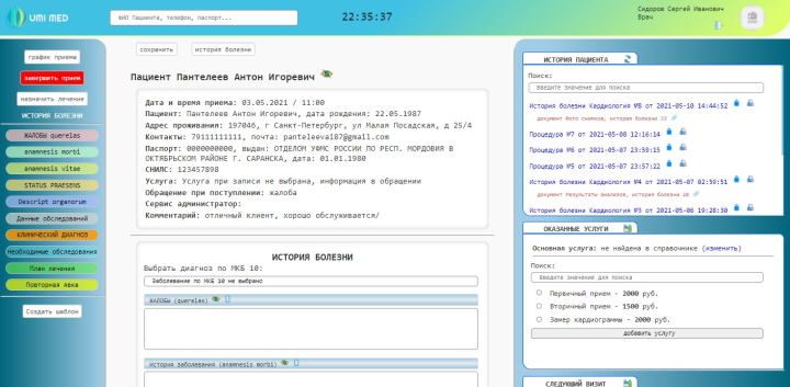Ведение истории болезни в МИС UMIMED