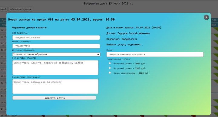 - Быструю запись пациентов - менее 30 секунд