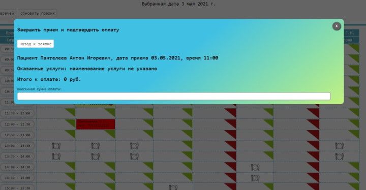 Раздел данной МИС "График приема пациентов" включает в себя: