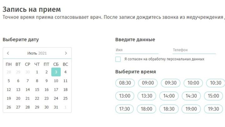 Пациенты смогут самостоятельно выбирать удобное время приёма, понравившегося врача. В онлайн-записи отображаются только свободные интервалы из графика приема, врач получает заявку прямо в свой календарь.