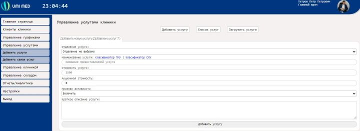 МИС UMI MED позволяет синхронизировать справочник медицинских услуг с сайтом клиники в онлайн режиме, тем самым облегчая работу по актуализации стоимости услуг либо добавлению новых услуг. Управление услугами включает в себя формирование прайса услуг в МИС UMI MED и синхронизирует услуги с сайтом медицинского учреждения.